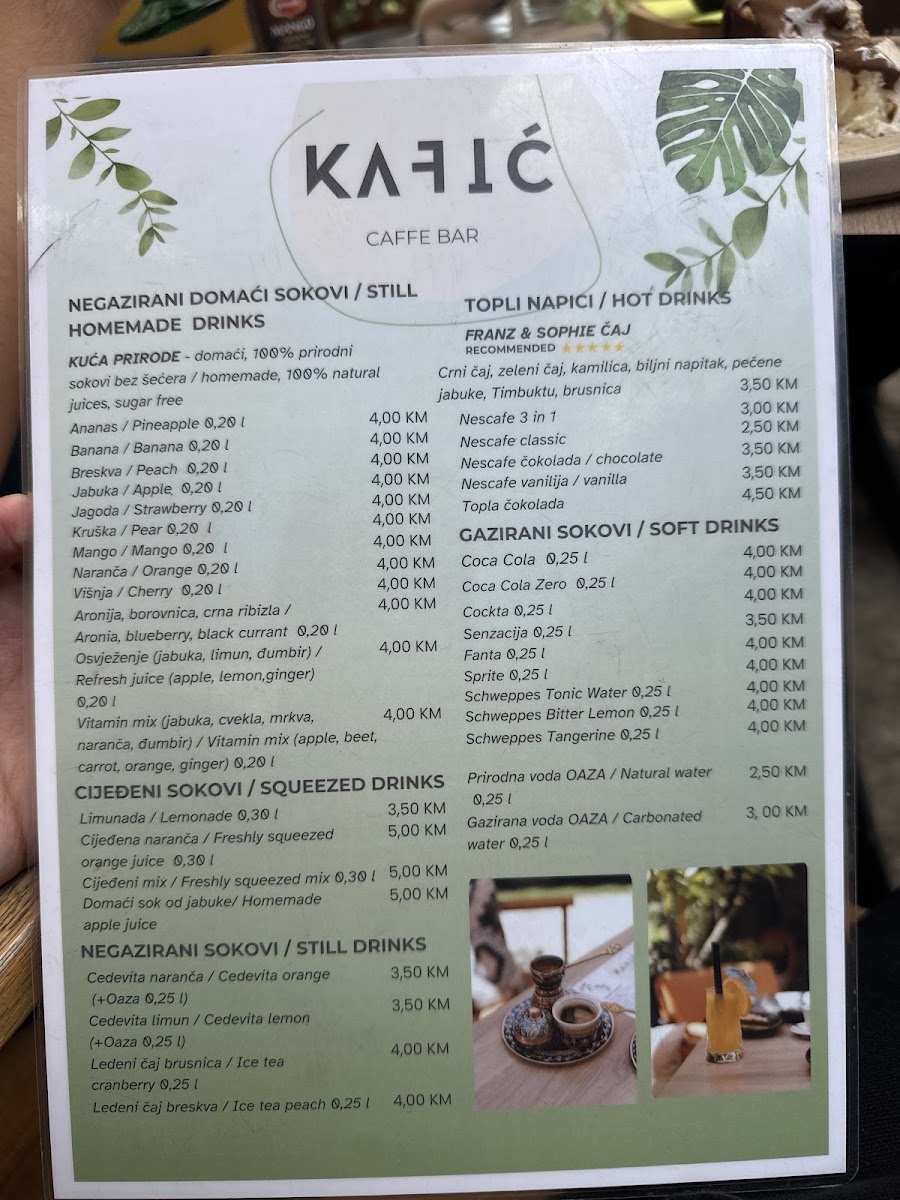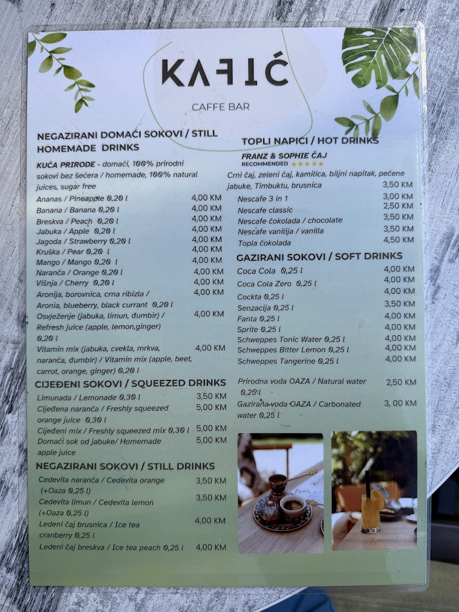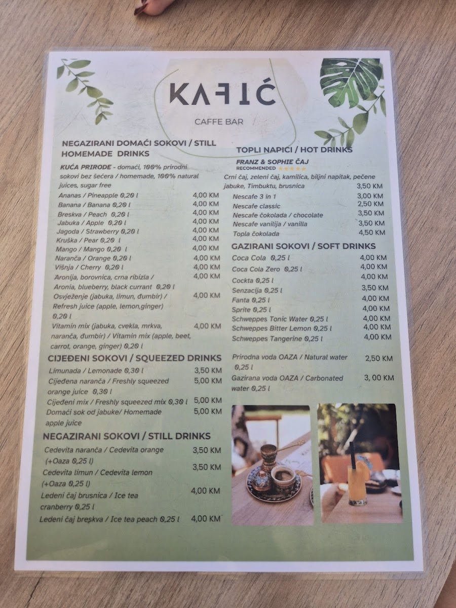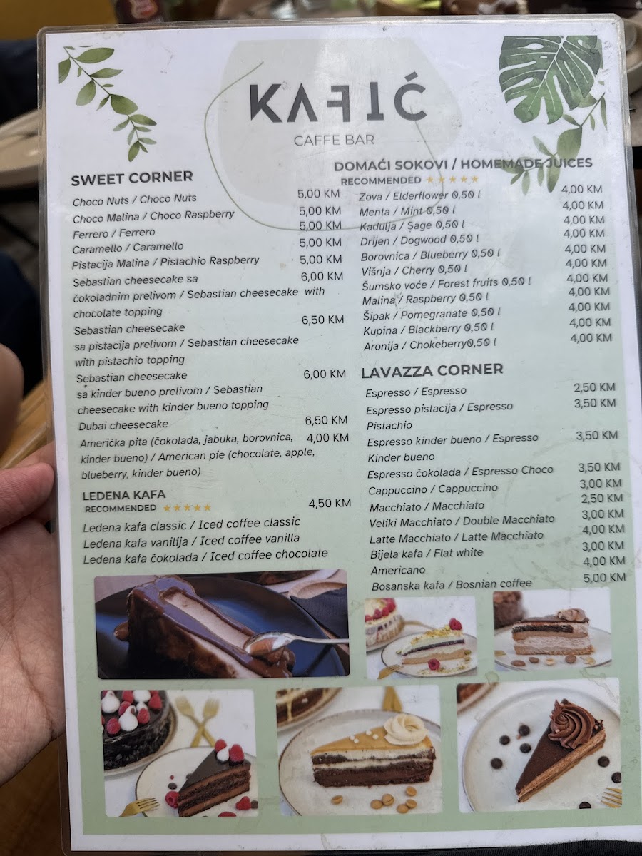 The menu at Caffe bar Kafić offers a cozy selection typical of a local café and pastry shop, focusing on comforting drinks and a variety of homemade cakes that pair well with relaxed, everyday moments. Whether you’re stopping by for a quiet coffee break or a casual meet-up with friends, the menu provides familiar flavors with a touch of indulgence.
